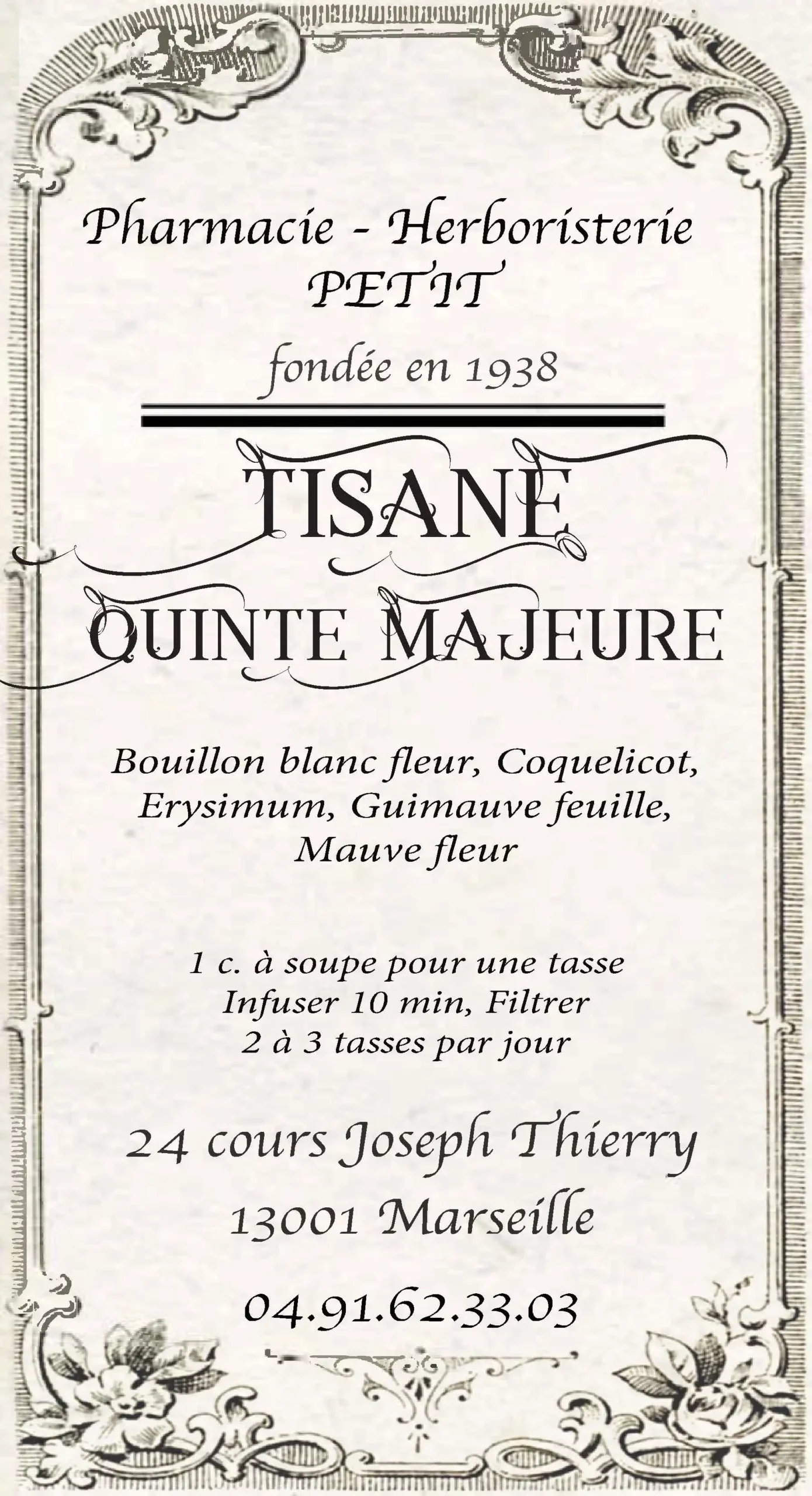 Posologie : 1 c. à soupe par tasse. Infuser 10 min à couvert, Filtrer. Boire 2 à 3 tasses par jour
