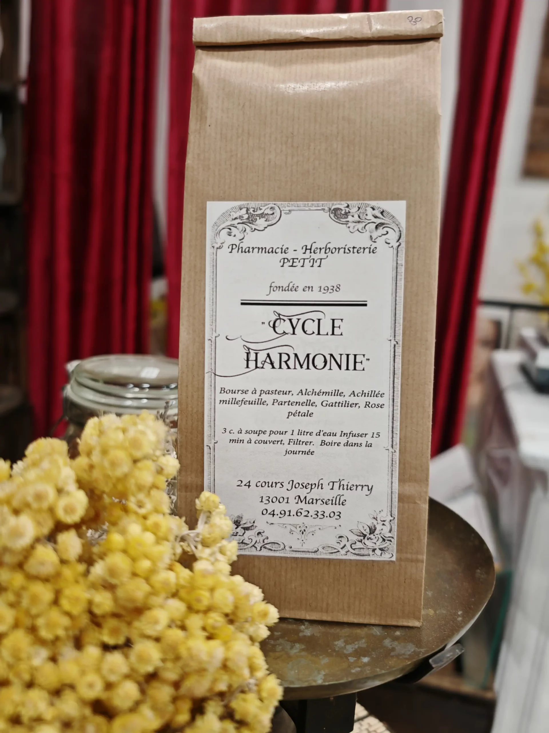Ingrédients : Bourse à pasteur, Alchémille, Achillée millefeuille, Partenelle, Gattilier, Rose pétale